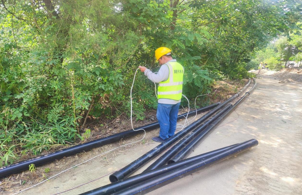 十二天跑出“加速度”,精細施工彰顯溫度。工程推進中面臨了雙重挑戰(zhàn):一是管網(wǎng)需沿編鐘大道西側(cè)鋪設,既要保證質(zhì)量,又要最大限度減少破壞;二是該地段位于城鄉(xiāng)結(jié)合部,需兼顧交通疏導與物料規(guī)范堆放。項目團隊創(chuàng)新采用“早挖、午鋪、晚修”的緊湊施工模式——清晨開挖溝槽,午后完成DN110PE管材鋪設,夜間即恢復路面,嚴格實現(xiàn)“施工不過夜、出行不影響”。同時配備揚塵監(jiān)測與降噪設備,全方位打造綠色文明施工環(huán)境,細節(jié)之處盡顯為民溫度。